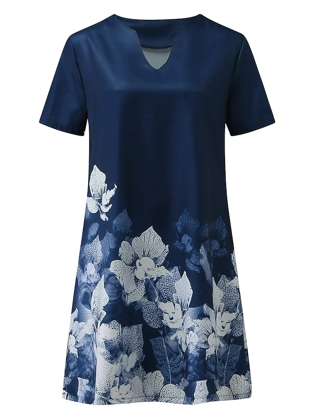Women‘s A Line Dress Knee Length Dress Green Blue Short Sleeve Floral Print Spring Summer V Neck Basic Casual Loose 2023 S M L XL XXL 3XL / 3D Print
