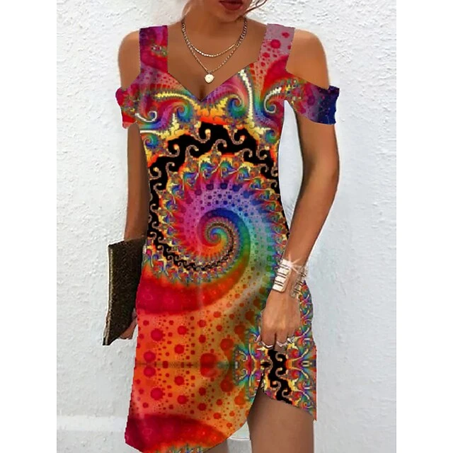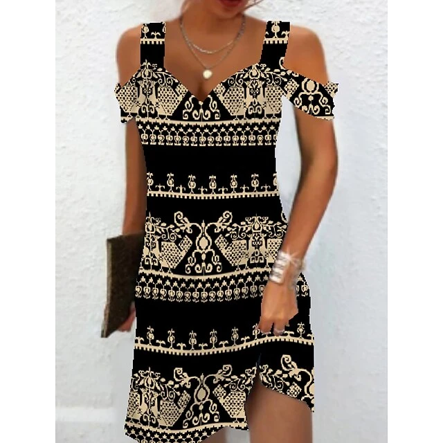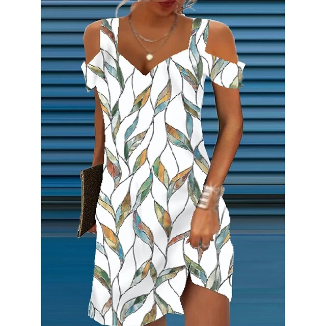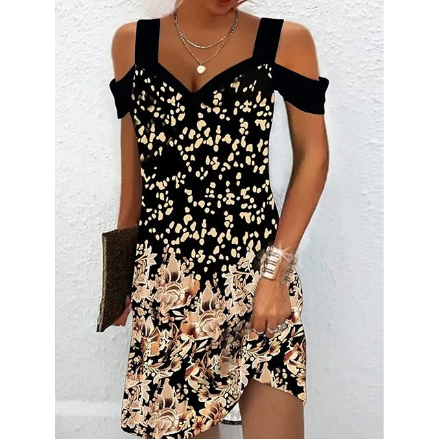 Women’s Casual Dress A Line Dress Summer Dress Print Cold Shoulder Print V Neck Mini Dress Active Modern Daily Holiday Short Sleeve Regular Fit Black And White Light Yellow Black Summer Spring S M L