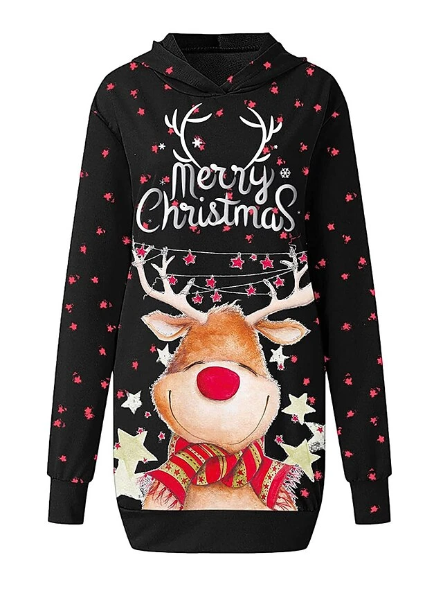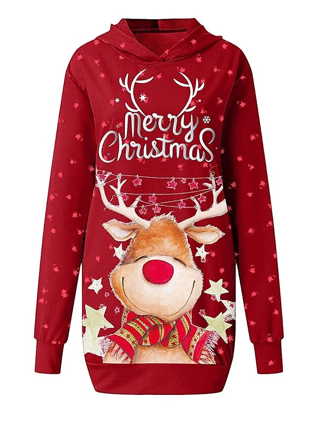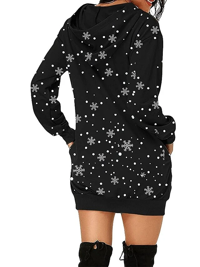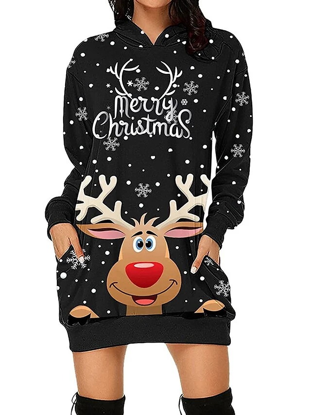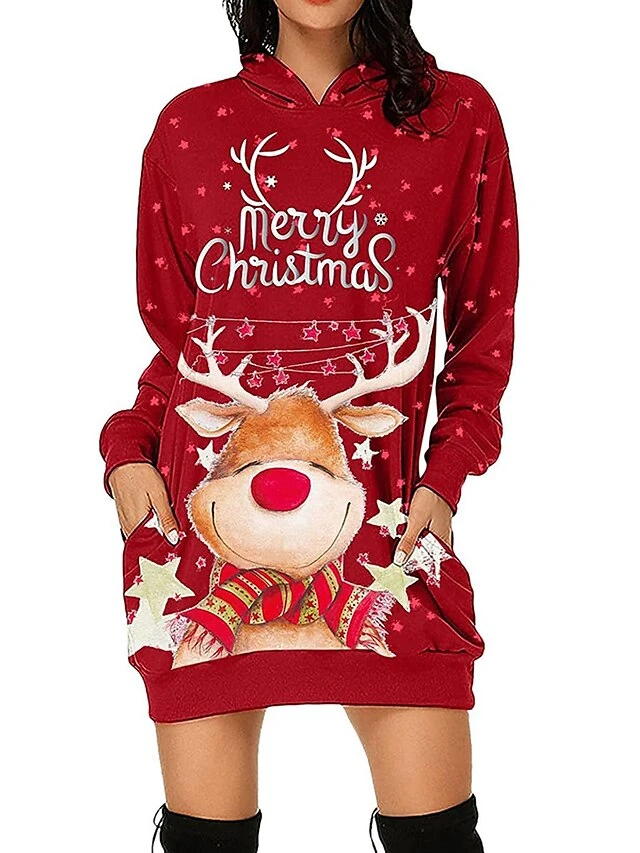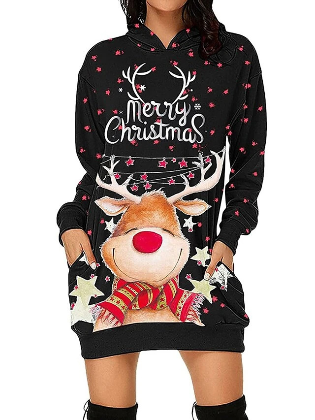 Women’s Casual Dress Christmas Dress Hoodie Dress Animal Letter Pocket Print Hooded Mini Dress Active Fashion Outdoor Christmas Long Sleeve Loose Fit Black Wine Khaki Fall Winter S M L XL XXL