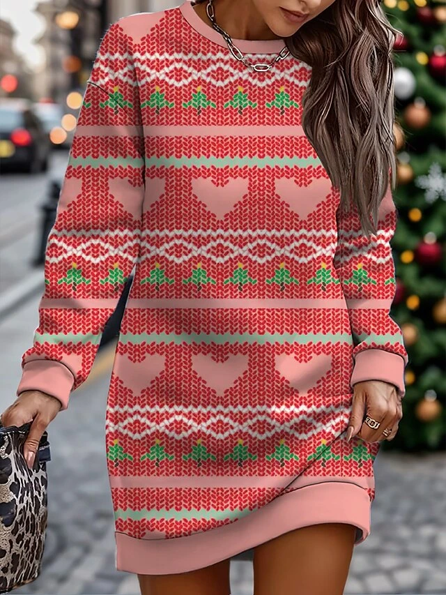 Women’s Casual Dress Christmas Dress Sweatshirt Dress Geometric Snowflake Print Crew Neck Mini Dress Fashion Streetwear Outdoor Christmas Long Sleeve Loose Fit Pink Wine Red Fall Winter S M L XL XXL