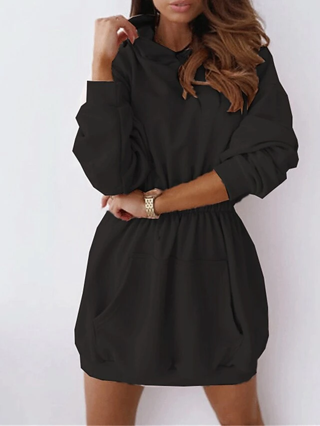 Women’s Casual Dress Hoodie Dress Mini Dress Active Daily Outdoor Holiday Vacation Hoodie Pocket Solid Color Regular Fit Black White Pink S M L XL XXL