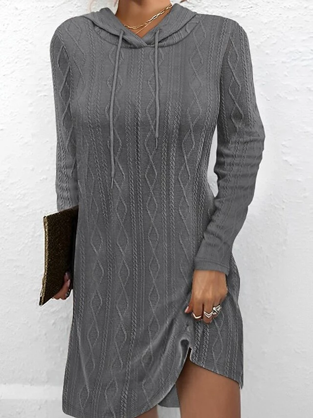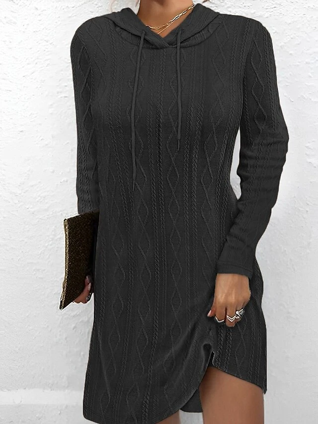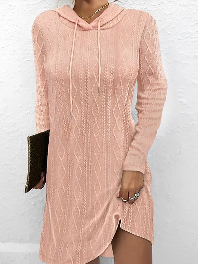 Women’s Casual Dress Hoodie Dress Mini Dress Active Daily Outdoor Holiday Vacation V Neck Knit Solid Color Loose Fit Black Pink Brown S M L XL XXL