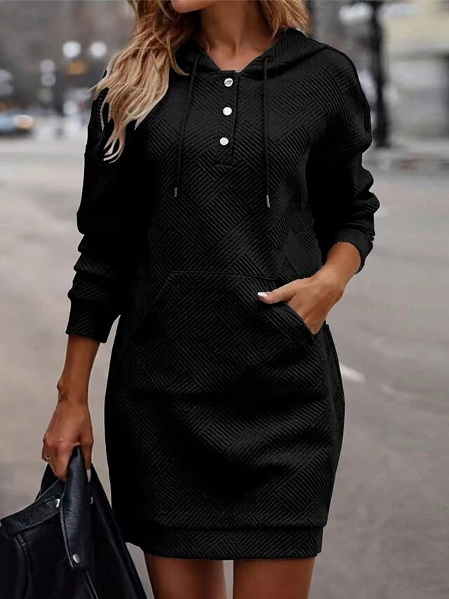 Women’s Casual Dress Hoodie Dress Mini Dress Active Daily Outdoor Holiday Vacation V Neck Pocket Solid Color Loose Fit Black Brown Chocolate S M L XL XXL
