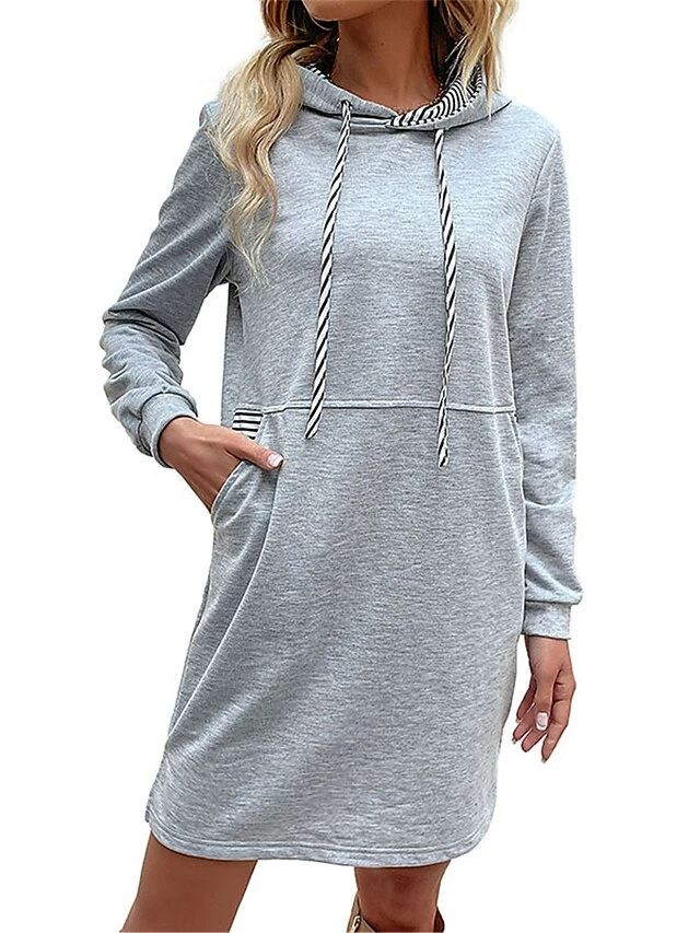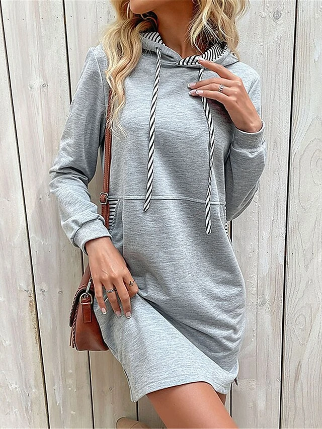 Women’s Casual Dress Hoodie Dress Mini Dress Fashion Daily Outdoor Vacation Going Out V Neck Pocket Solid Color Striped Loose Fit Gray S M L XL