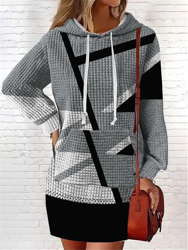 Women’s Casual Dress Hoodie Dress Mini Dress Warm Fashion Outdoor Vacation Going Out V Neck Pocket Print Floral Geometric Loose Fit Pink Burgundy Blue S M L XL XXL