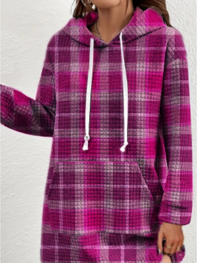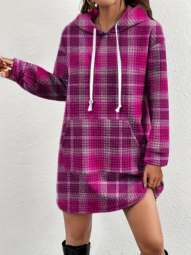 Women’s Casual Dress Hoodie Dress Mini Dress Warm Fashion Outdoor Vacation Going Out V Neck Pocket Print Geometric Loose Fit Rose Red S M L XL XXL