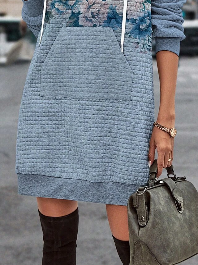 Women’s Casual Dress Hoodie Dress Winter Dress Floral Button Print Hooded Mini Dress Fashion Streetwear Outdoor Daily Long Sleeve Regular Fit Blue Fall Winter S M L XL XXL