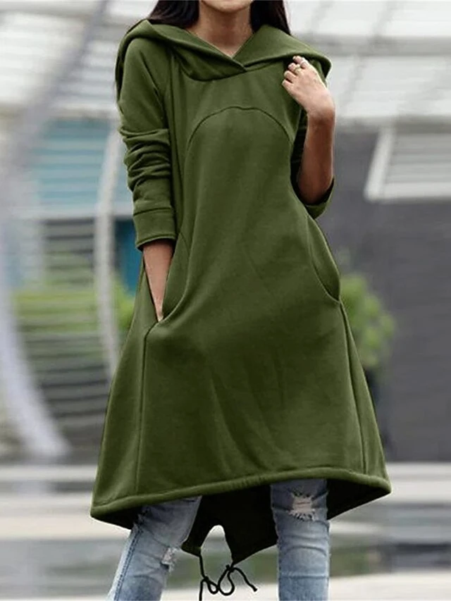 Women’s Casual Dress Hoodie Dress Winter Dress Midi Dress Pocket Outdoor Street Daily Fashion Streetwear Hooded Long Sleeve 2023 Loose Fit Black Army Green Gray Color S M L XL XXL Size