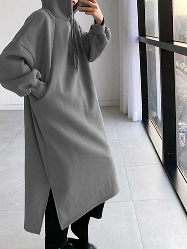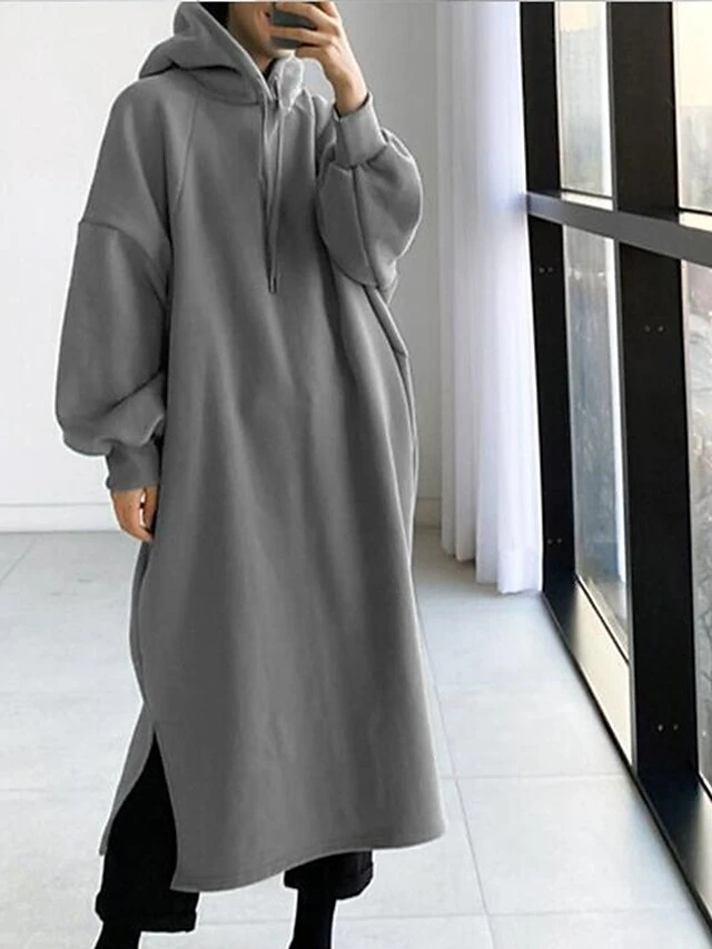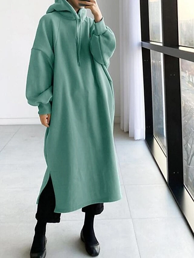 Women’s Casual Dress Hoodie Dress Winter Dress Midi Dress Split Outdoor Daily Going Out Fashion Streetwear Hooded Long Sleeve 2023 Loose Fit Black Green Army Green Color S M L XL XXL Size