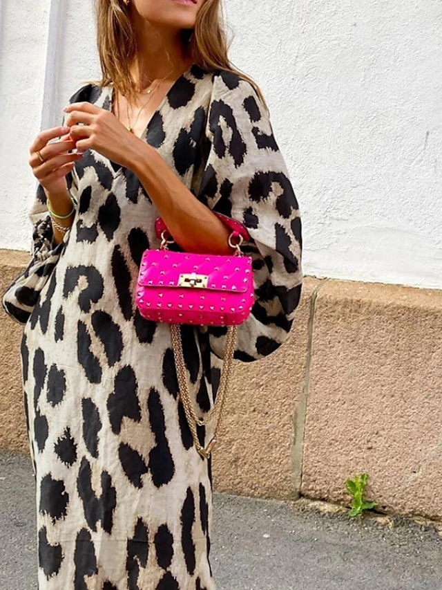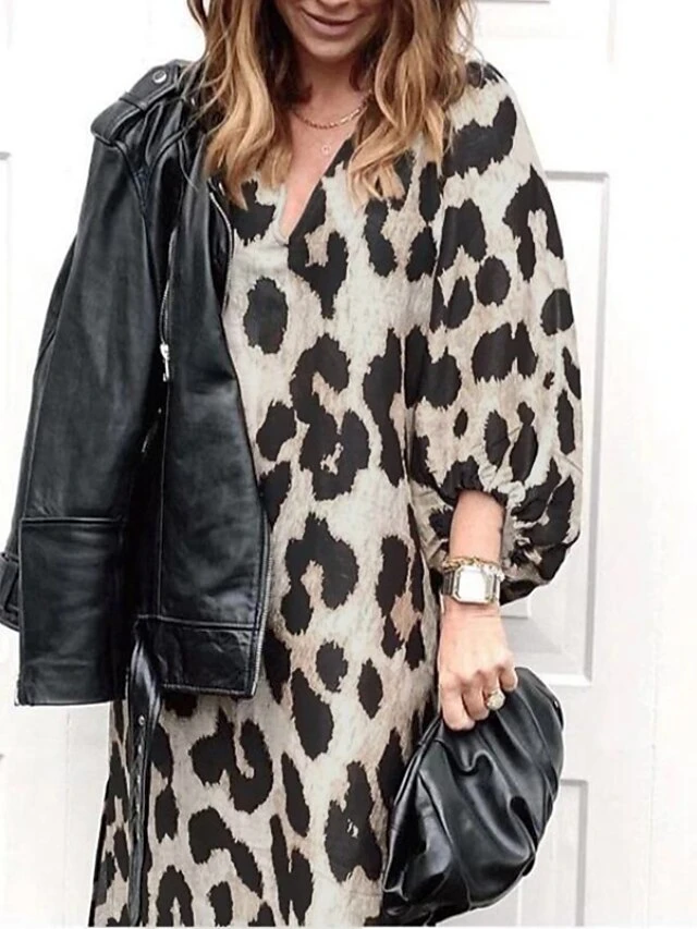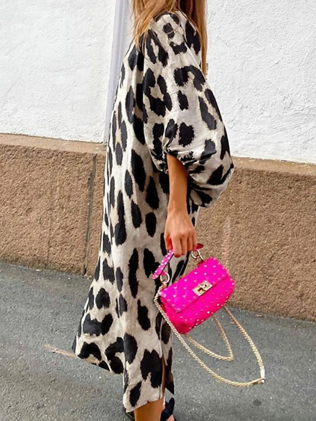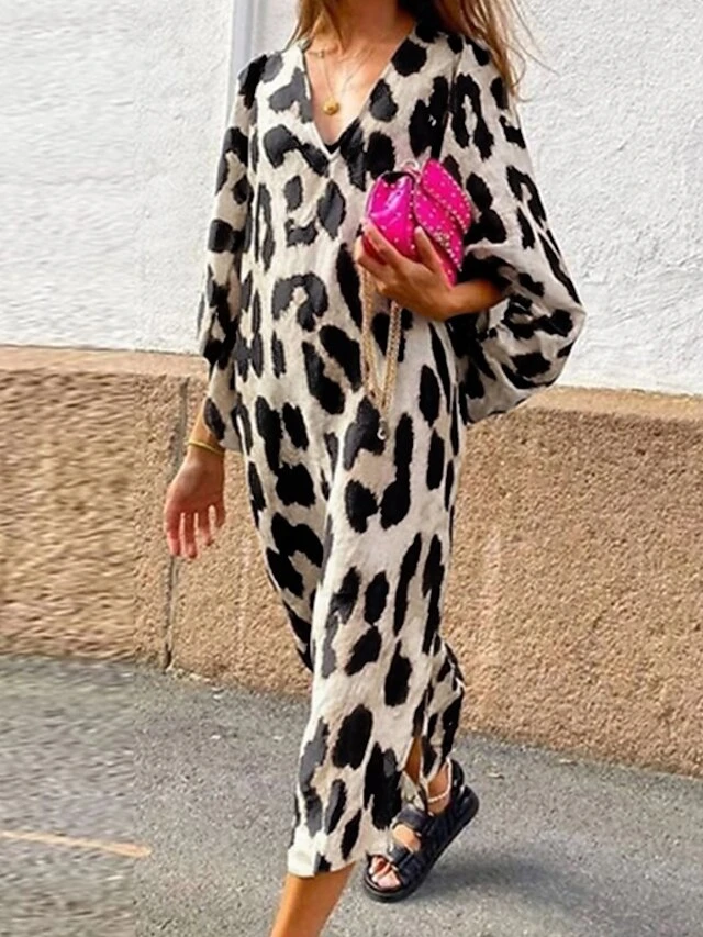 Women’s Casual Dress Midi Dress Leopard 3/4 Length Sleeve Leopard Split Summer Spring V Neck Casual 2023 S M L XL XXL