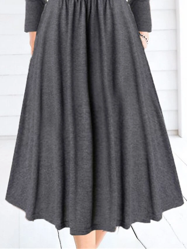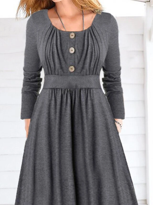 Women’s Casual Dress Plain Dress Spring Dress Midi Dress Ruched Button Outdoor Daily Date Fashion Streetwear Crew Neck Long Sleeve 2023 Regular Fit Gray Color S M L XL XXL Size