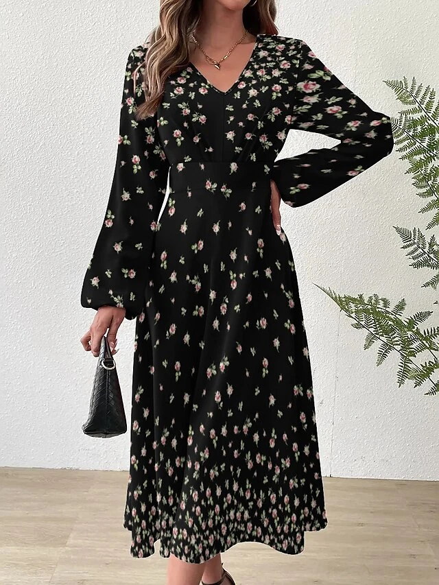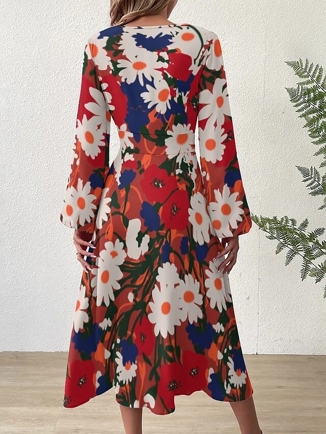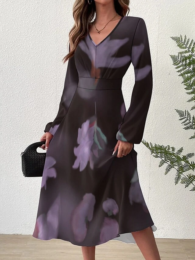 Women’s Casual Dress Print Dress Graphic Print V Neck Long Dress Maxi Dress Classic Daily Long Sleeve Regular Fit Black Red Lilac Fall S M L XL XXL
