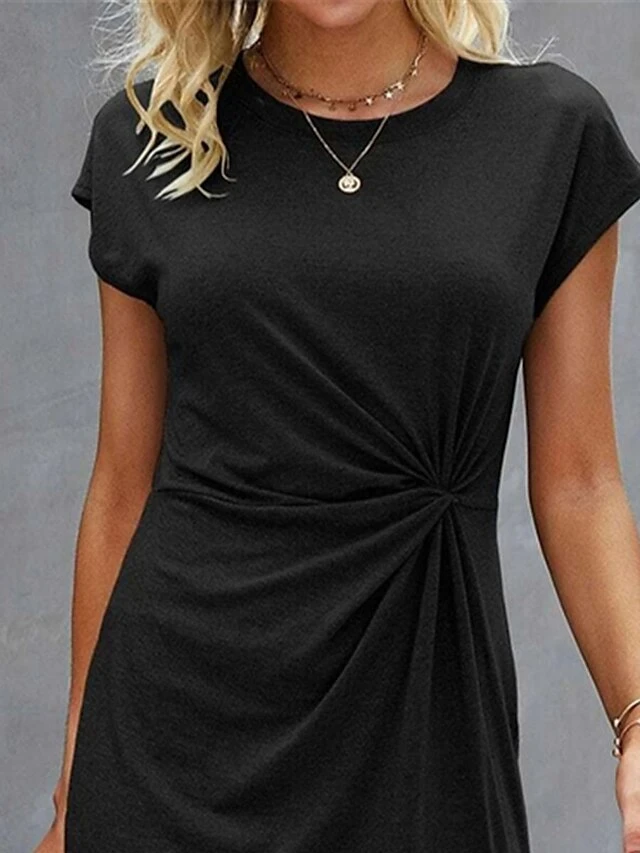 Women’s Casual Dress Sheath Dress Summer Dress Midi Dress Knot Front Daily Date Going Out Fashion Basic Crew Neck Short Sleeve 2023 Regular Fit Black Green Gray Color S M L XL XXL Size