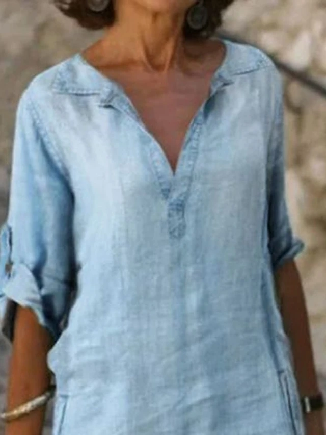 Women’s Casual Dress Shift Dress Denim Shirt Dress Midi Dress Denim Fashion Modern Outdoor Daily Vacation V Neck Rolled Cuff Half Sleeve Summer Spring Fall 2023 Loose Fit Blue Plain S M L XL 2XL