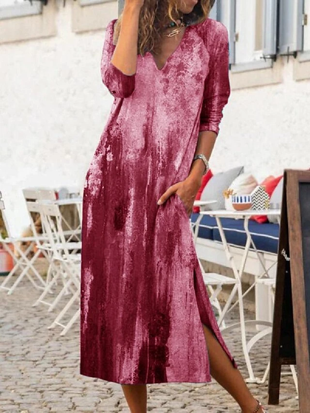 Women’s Casual Dress Shift Dress Swing Dress Midi Dress Pink Blue Grey 3/4 Length Sleeve Tie Dye Pocket Summer Spring V Neck Vacation Loose Fit 2023 S M L XL 2XL 3XL