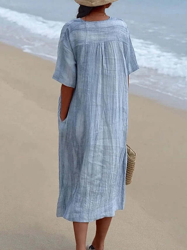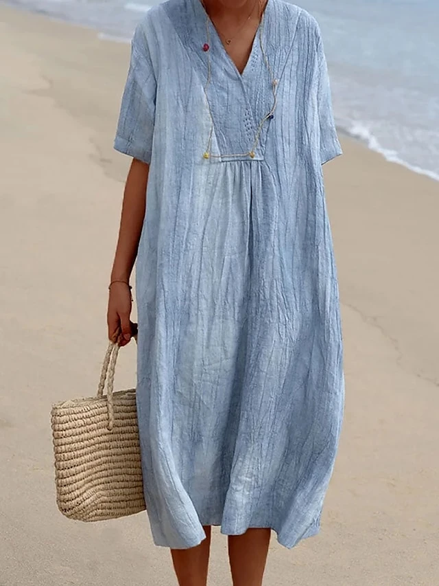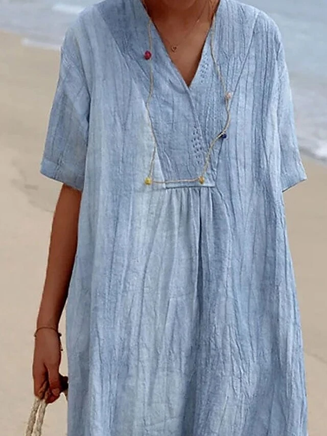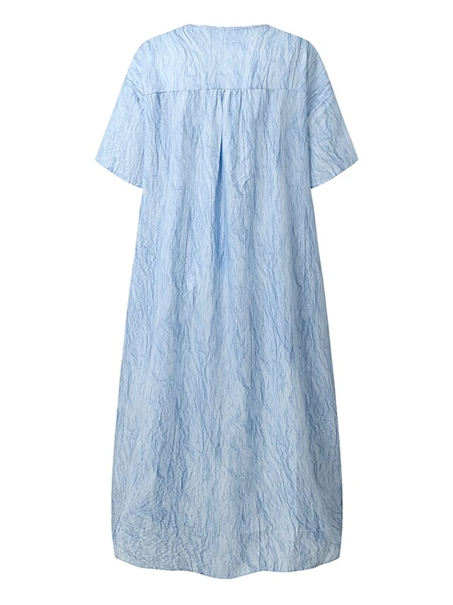 Women‘s Casual Dress Shirt Dress Shift Dress Plain Dress Plain Pocket V Neck Midi Dress Fashion Basic Outdoor Daily Half Sleeve Loose Fit Blue Dark Green Summer Spring S M L XL 2XL
