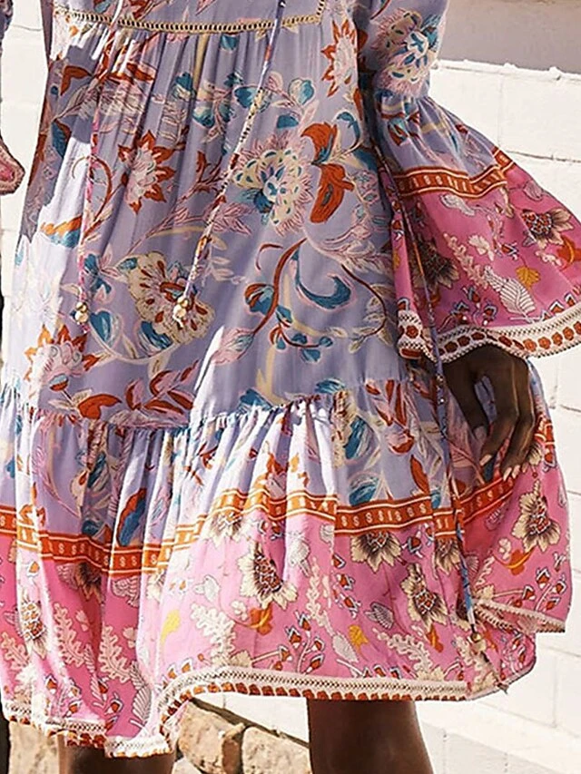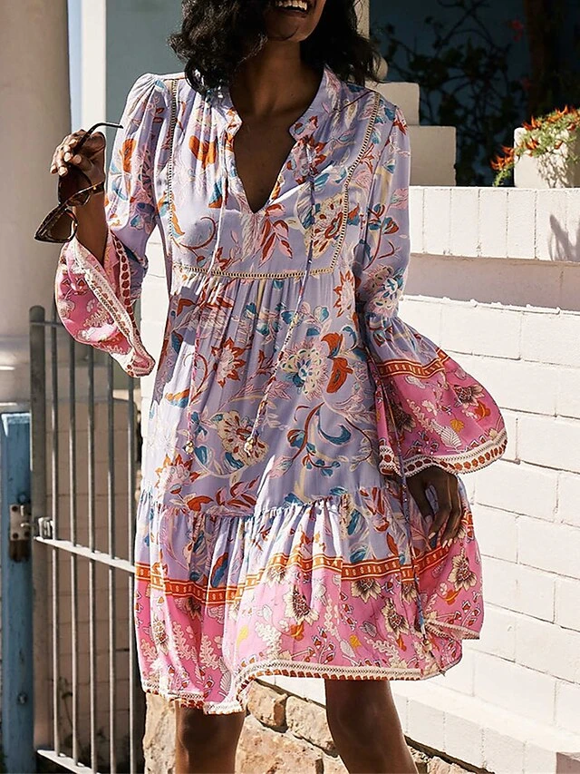 Women’s Casual Dress Summer Dress Floral Print V Neck Mini Dress Modern Vacation Long Sleeve Regular Fit Pink Summer Spring S M L XL XXL