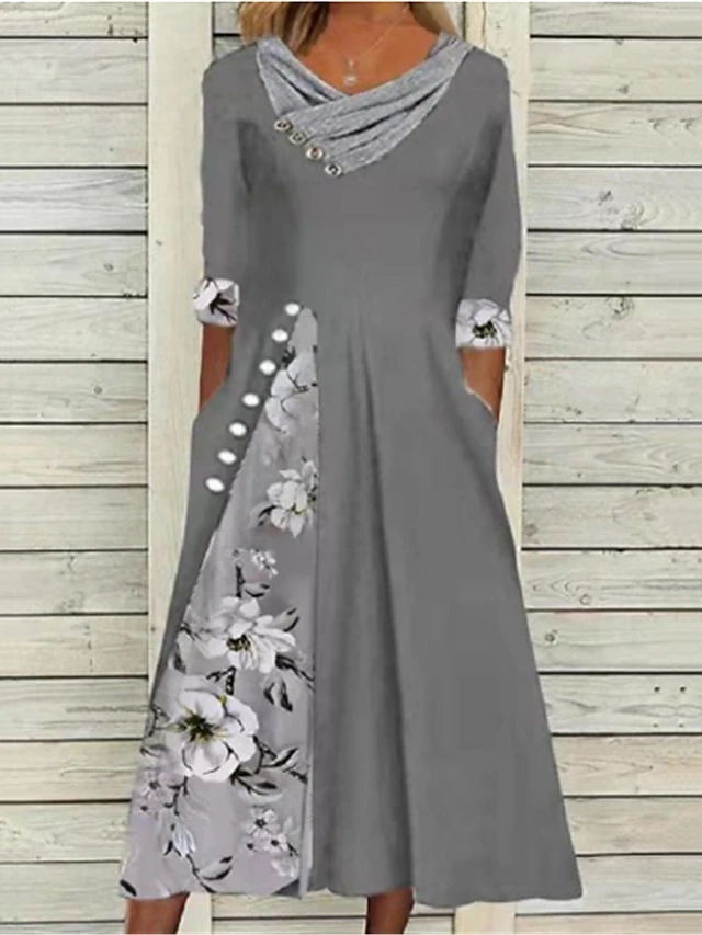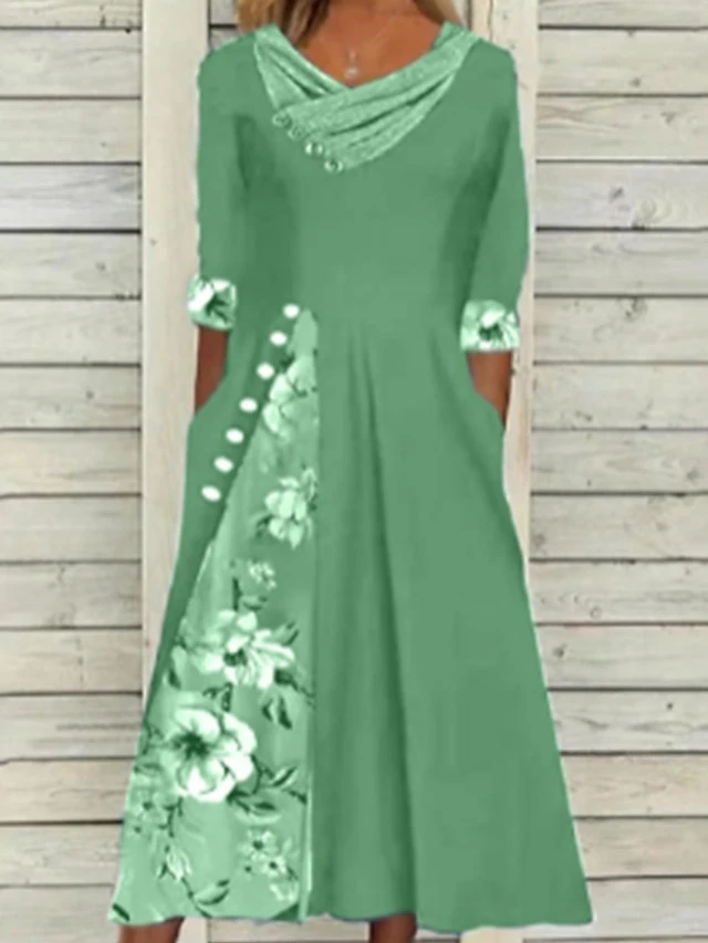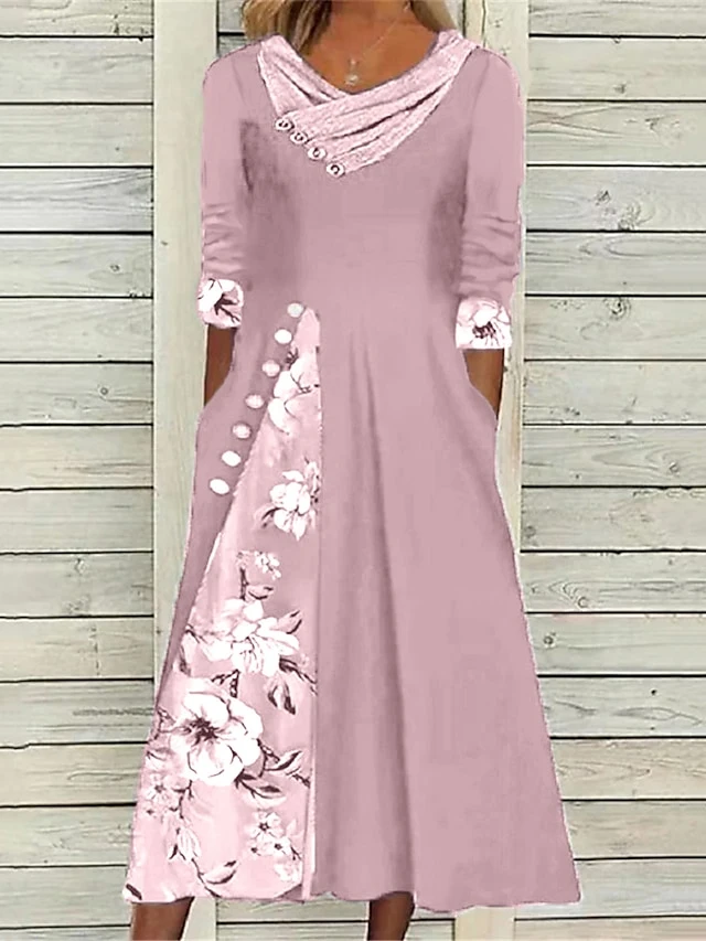 Women’s Casual Dress Summer Dress Print Dress Floral Button Pocket V Neck Midi Dress Fashion Streetwear Outdoor Street Half Sleeve Loose Fit Pink Navy Blue Blue Summer Spring S M L XL XXL