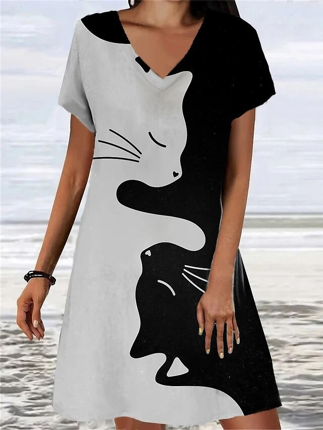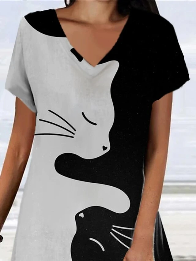Women’s Casual Dress Summer Dress Print Dress Graphic Color Block Print V Neck Mini Dress Fashion Modern Daily Holiday Short Sleeve Loose Fit Gray Summer Spring S M L XL XXL