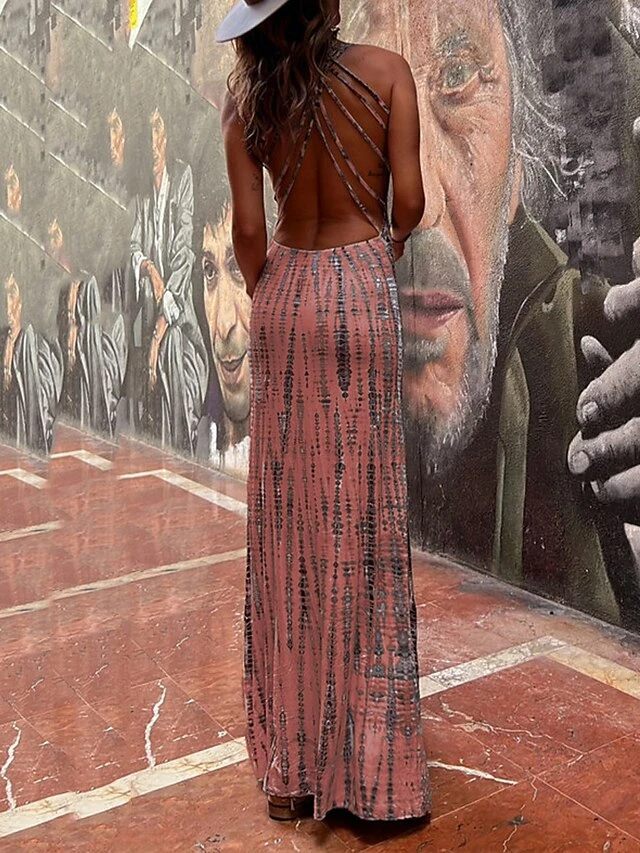 Women’s Casual Dress Summer Dress Slip Dress Tie Dye Backless Print Strap Long Dress Maxi Dress Fashion Streetwear Outdoor Street Sleeveless Regular Fit Pink Red Blue Summer Spring S M L XL