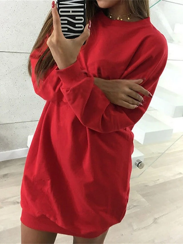 Women’s Casual Dress Sweatshirt Dress Mini Dress Active Fashion Outdoor Sport Going Out Crew Neck Solid Color Loose Fit Black White Pink S M L XL