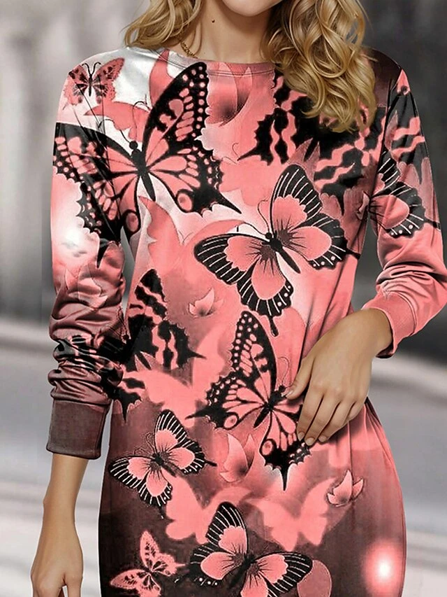 Women’s Casual Dress Sweatshirt Dress Mini Dress Warm Fashion Outdoor Vacation Going Out Crew Neck Print Print Regular Fit Pink S M L XL XXL