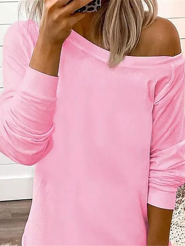 Women’s Casual Dress Sweatshirt Dress Winter Dress Mini Dress Cold Shoulder Outdoor Street Daily Fashion Streetwear One Shoulder Long Sleeve 2023 Loose Fit Black Pink Color S M L XL Size