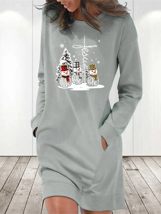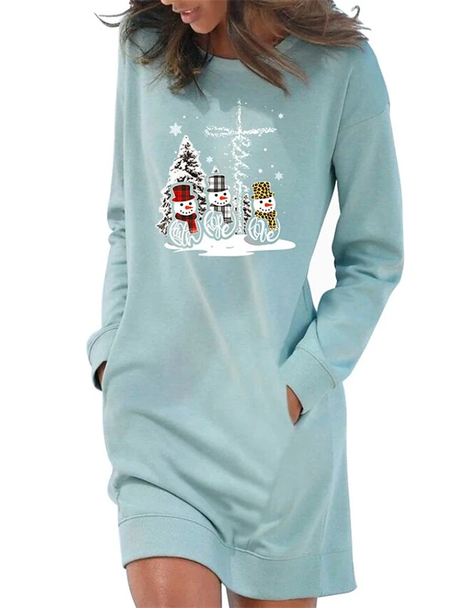 Women’s Casual Dress Sweatshirt Dress Winter Dress Mini Dress Light Blue White Grey Long Sleeve Snowman Pocket Fall Winter Autumn Crew Neck Stylish Christmas Loose Fit 2023 S M L XL 2XL