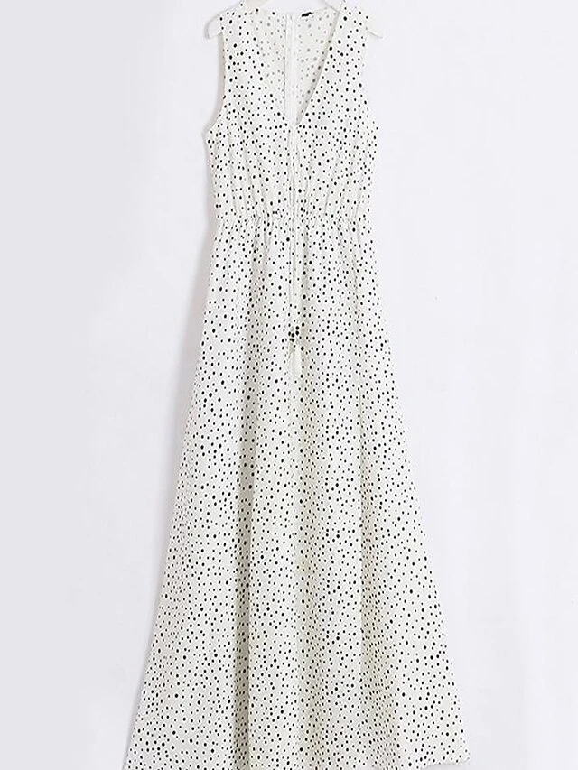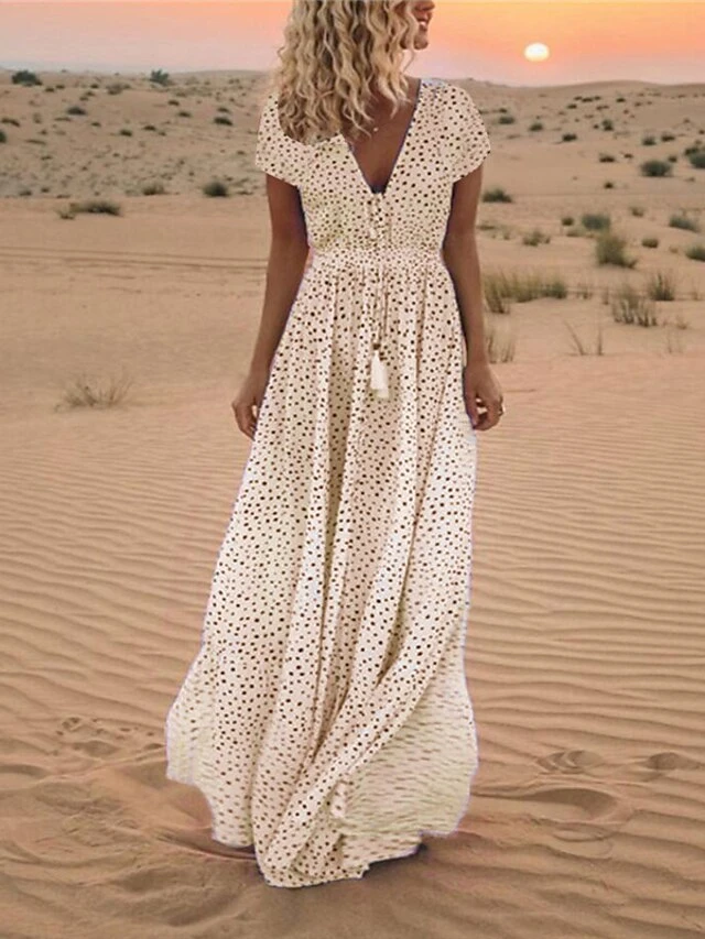 Women’s Casual Dress Swing Dress Boho Dress Long Dress Maxi Dress Light Blue Creamy-white Pink Short Sleeve Polka Dot Print Spring Summer V Neck Slim 2023 S M L XL XXL XXXL