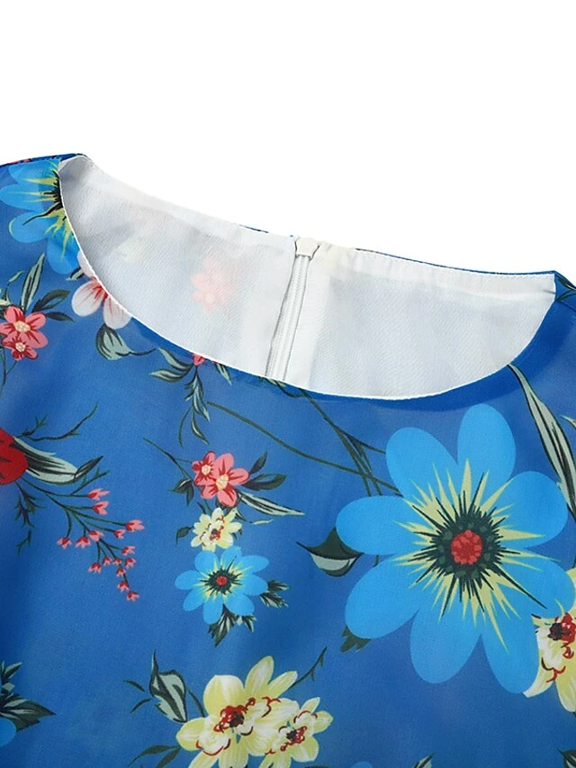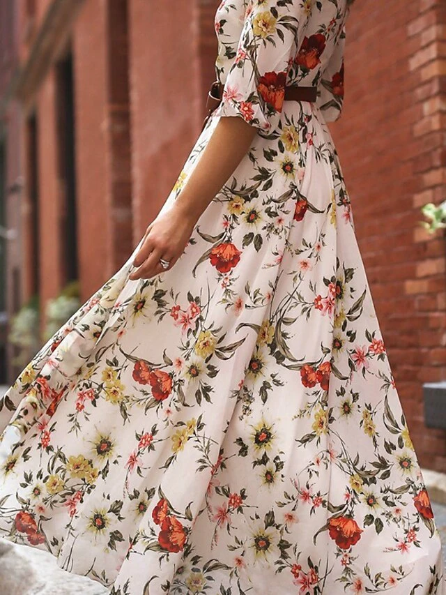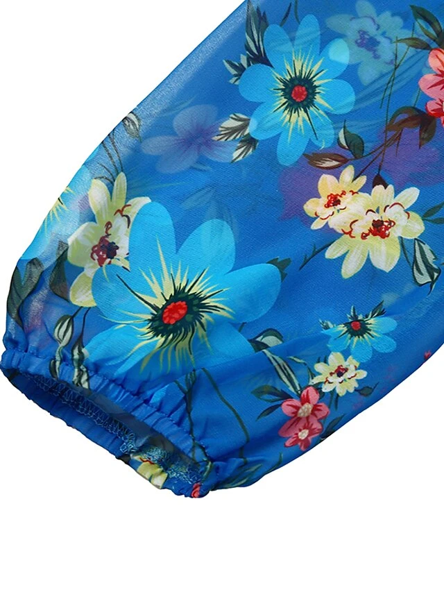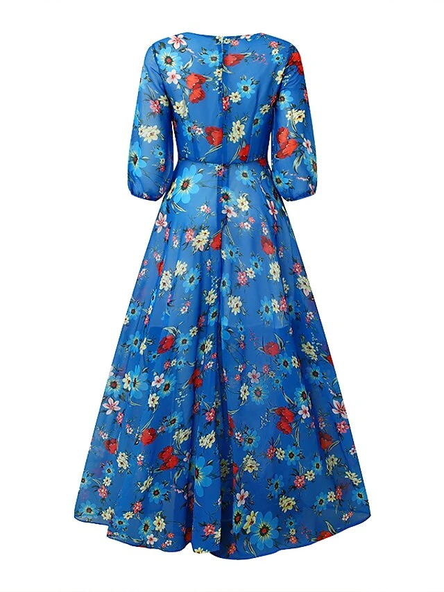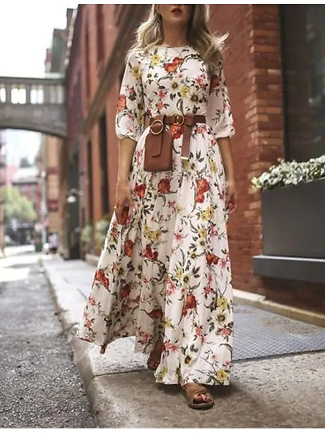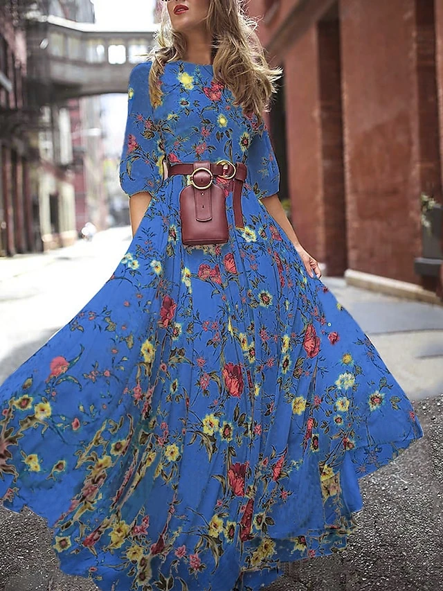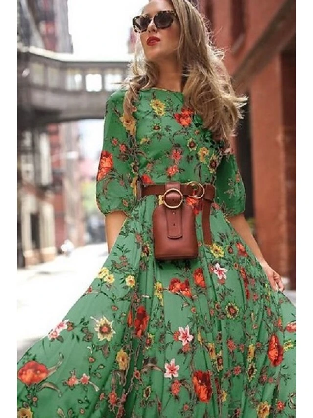 Women’s Casual Dress Swing Dress Floral Dress Chiffon Spring Summer Dress Long Dress Maxi Dress Boho Dress Green Blue White 3/4 Length Sleeve Floral Print Crew Neck 2023 S M L XL XXL
