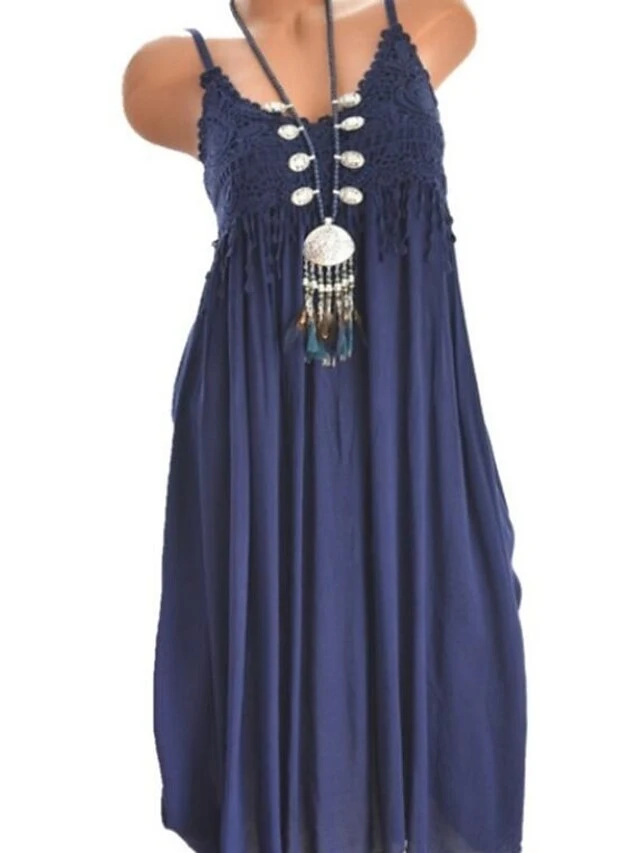 Women’s Casual Dress Swing Dress Midi Dress Light Blue Wine Black Sleeveless Pure Color Summer Spring Cold Shoulder Casual Daily 2023 S M L XL 2XL 3XL 4XL 5XL