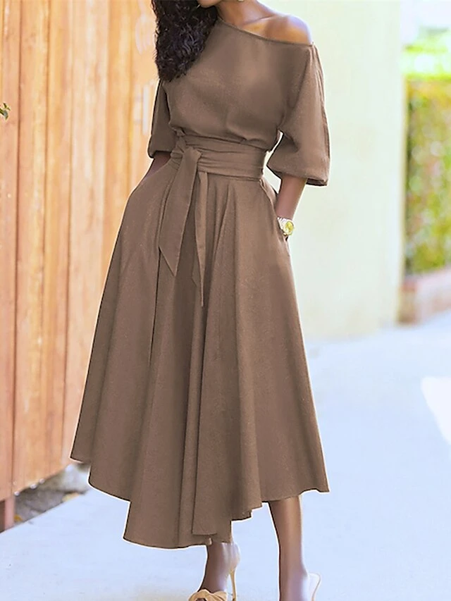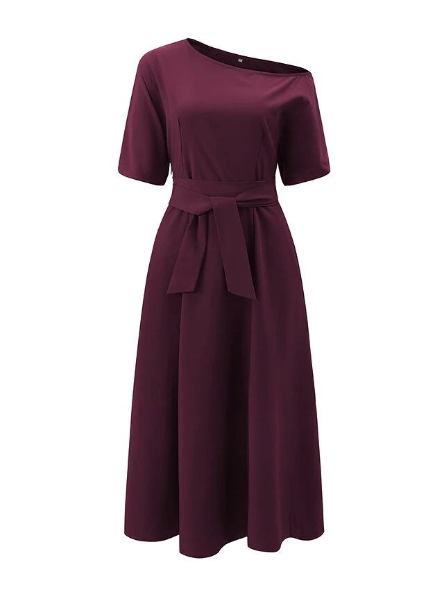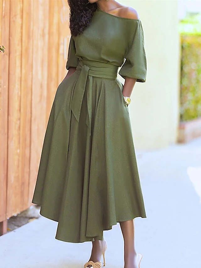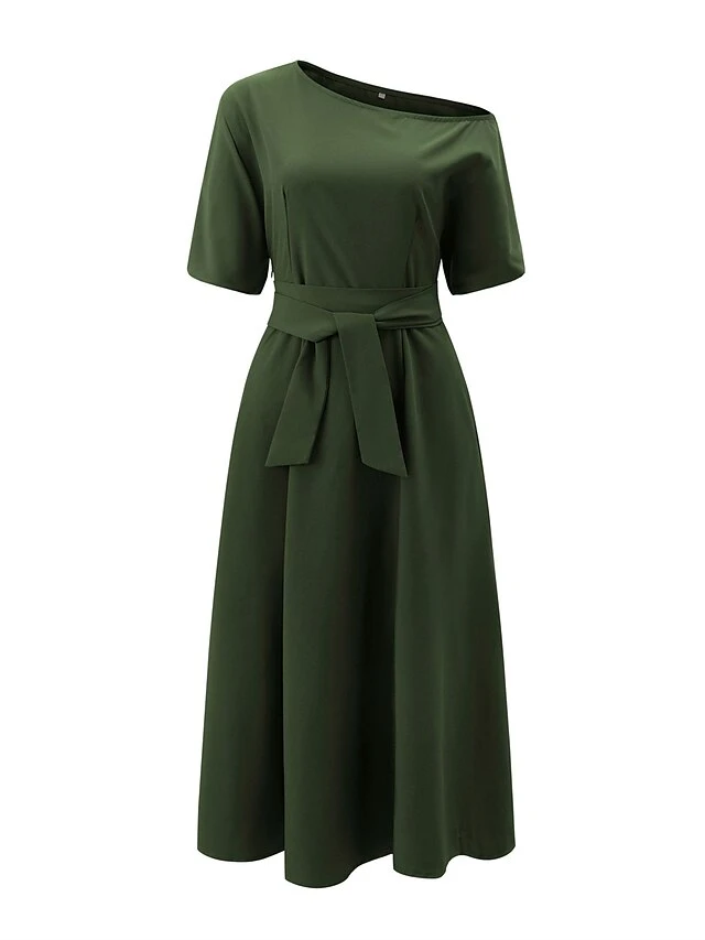 Women’s Casual Dress Swing Dress Summer Dress Long Dress Maxi Dress Lace Up Pocket Street Daily Going Out Fashion Elegant Crew Neck Half Sleeve 2023 Regular Fit Black Wine Green Color S M L XL XXL