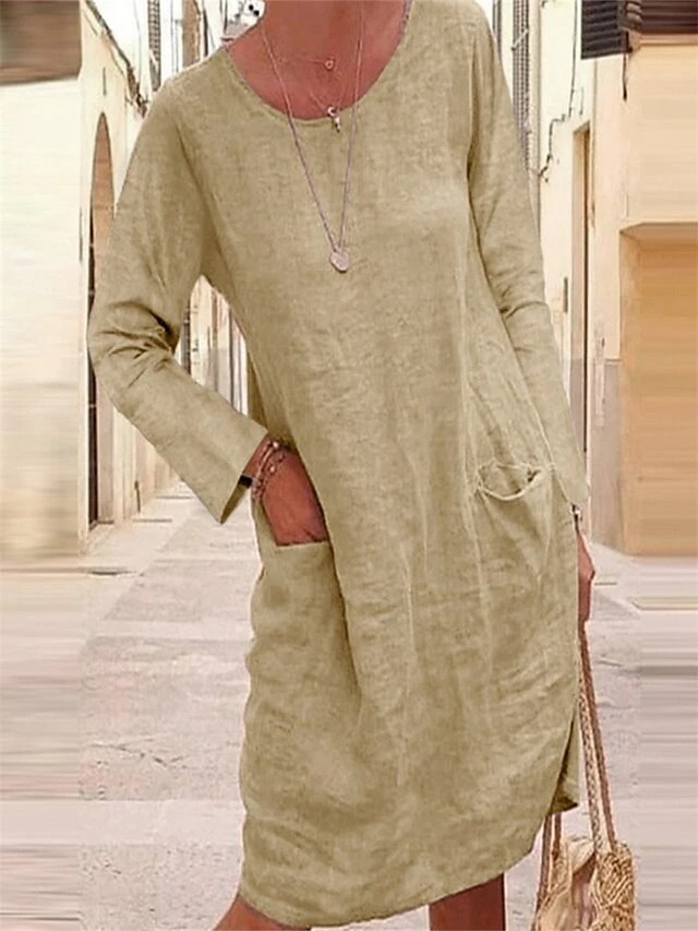 Women’s Casual Dress T Shirt Dress Tee Dress Linen Dress Mini Dress Black Blue Grey Long Sleeve Pure Color Pocket Summer Spring Crew Neck Fashion Vacation Fall Dress Spring Dress 2023 S M L XL 2XL