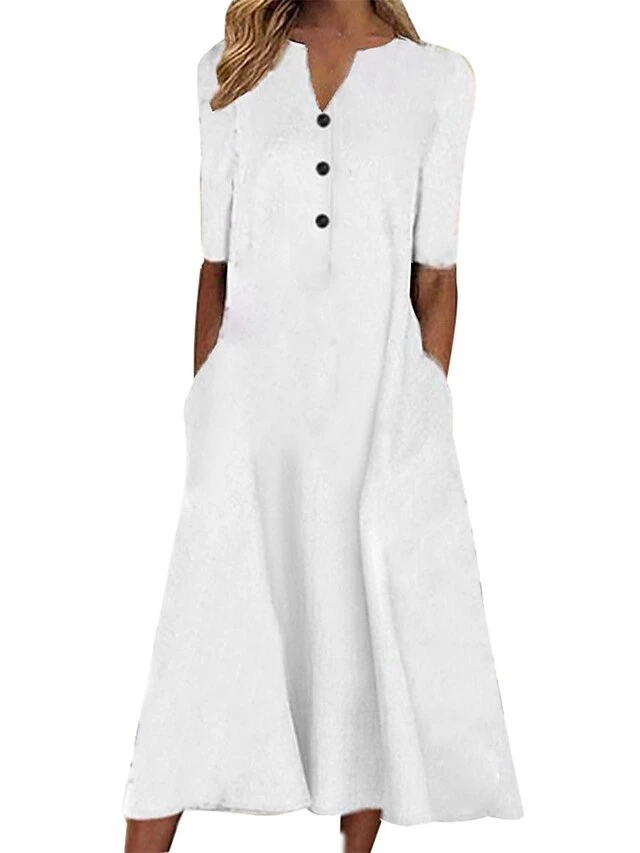 Women’s Casual Dress T Shirt Dress Tee Dress Midi Dress Black White Navy Blue Short Sleeve Pure Color Pocket Summer Spring V Neck Fashion Loose Fit 2023 S M L XL XXL