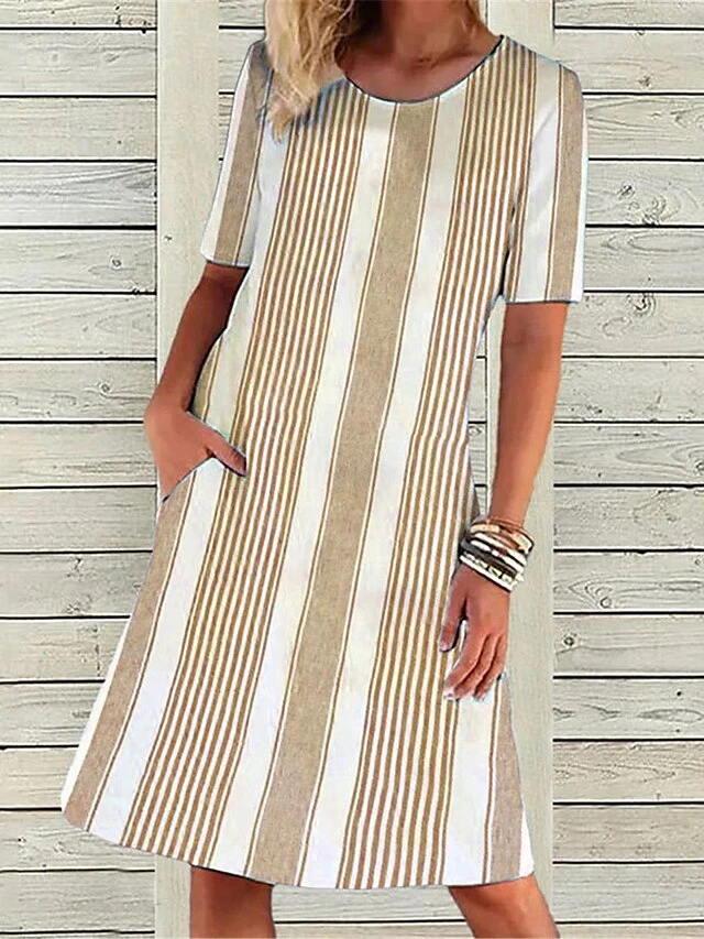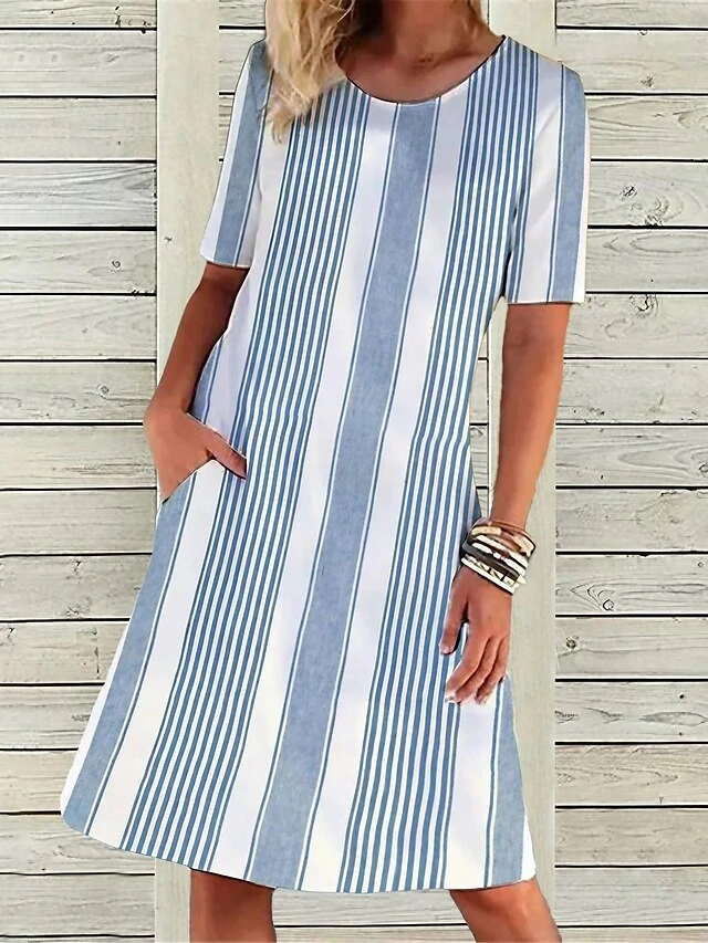 Women’s Casual Dress T Shirt Dress Tee Dress Shift Dress Stripe Pocket Print Crew Neck Midi Dress Active Fashion Outdoor Daily Short Sleeve Loose Fit Blue Purple Green Spring Summer S M L XL XXL
