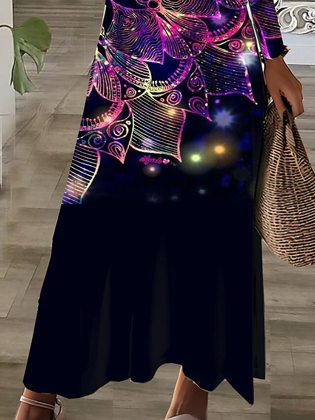 Women’s Casual Dress T Shirt Dress Tee Dress Winter Dress Graphic Pocket Print Lace Up Neck Long Dress Maxi Dress Fashion Streetwear Outdoor Daily Long Sleeve Regular Fit Purple Fall Winter S M L XL