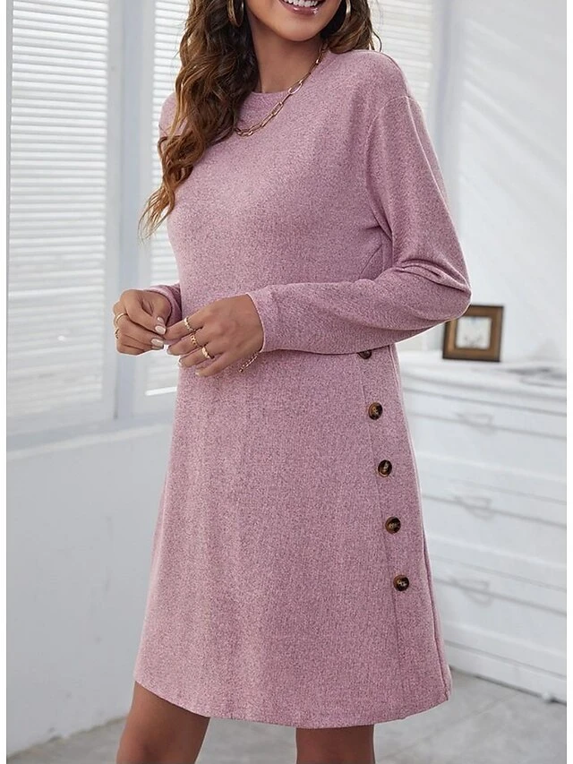 Women’s Casual Dress T Shirt Dress Tee Dress Winter Dress Mini Dress Patchwork Button Daily Going Out Weekend Basic Elegant Crew Neck Long Sleeve Black Pink Grey Color S M L XL 2XL Size