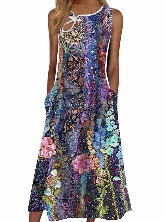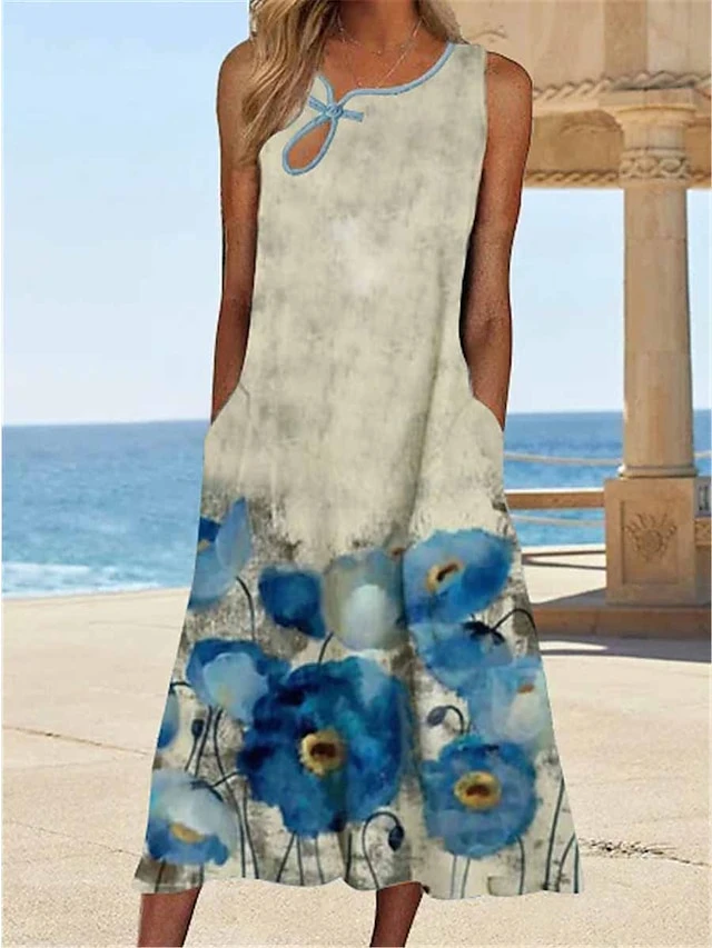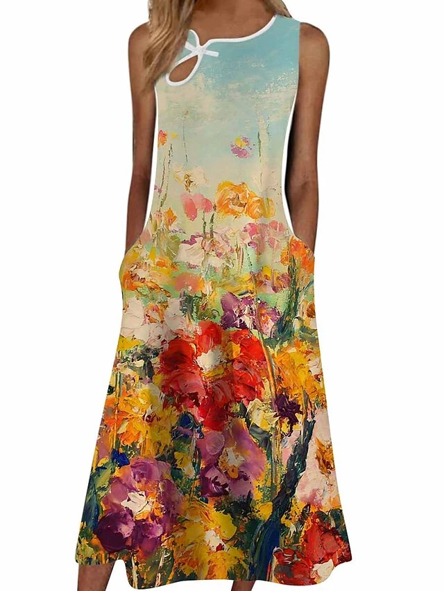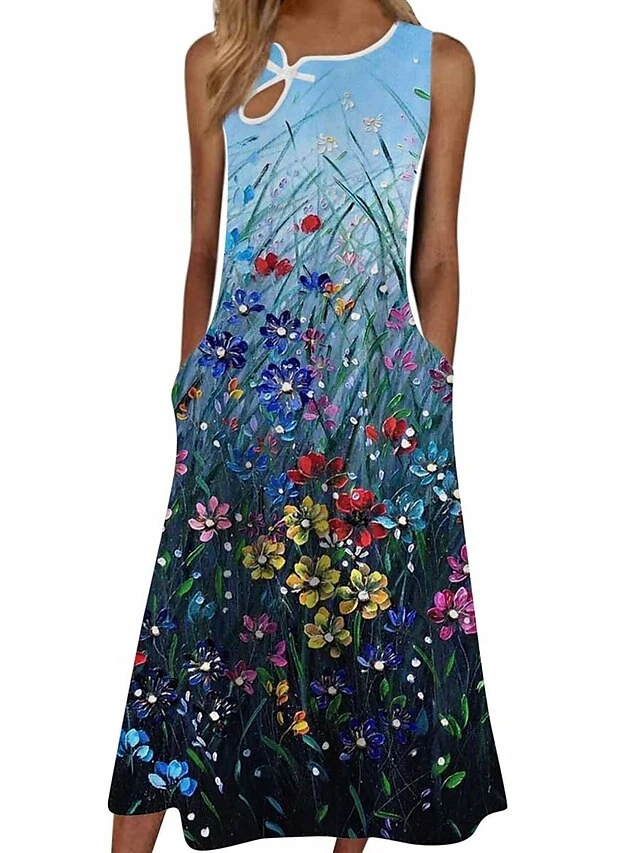 Women’s Casual Dress Tank Dress Summer Dress Floral Ombre Pocket Print Crew Neck Midi Dress Fashion Streetwear Outdoor Daily Sleeveless Regular Fit Blue Lavender Purple Summer Spring S M L XL XXL