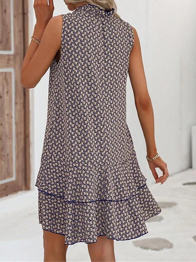 Women’s Casual Dress Tank Dress Summer Dress Geometric Hollow Out Print Stand Collar Mini Dress Fashion Streetwear Outdoor Date Sleeveless Regular Fit Black Red Blue Summer Spring S M L XL XXL