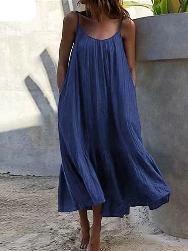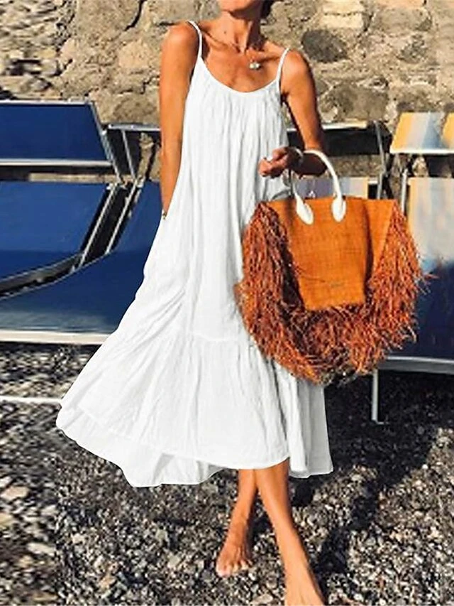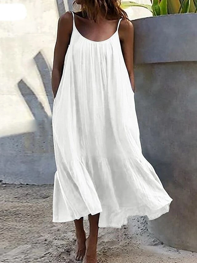 Women’s Casual Dress White Dress Summer Dress Long Dress Maxi Dress Ruffle Pocket Daily Date Going Out Fashion Basic Strap Sleeveless 2023 Loose Fit Black White Yellow Color S M L XL XXL Size
