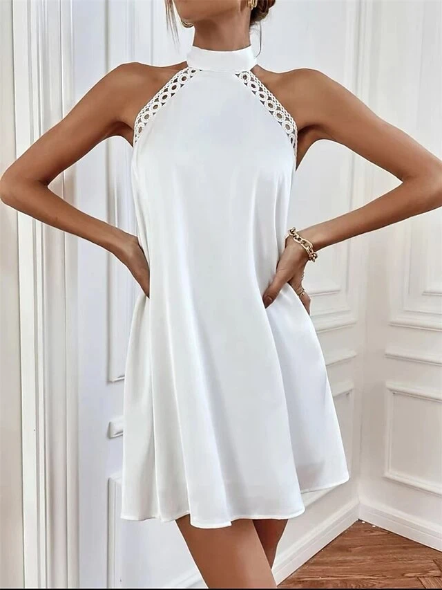 Women’s Casual Dress White Dress Summer Dress Mini Dress Lace Backless Street Daily Holiday Fashion Streetwear Halter Sleeveless 2023 Regular Fit White Color S M L XL XXL Size