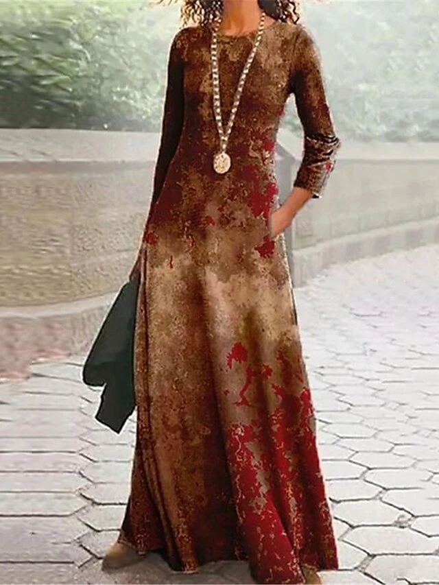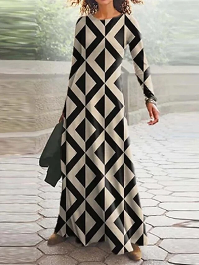 Women’s Casual Dress Winter Dress A Line Dress Floral Geometric Print Crew Neck Long Dress Maxi Dress Fashion Modern Outdoor Daily Long Sleeve Regular Fit Black Red Blue Fall Winter S M L XL XXL