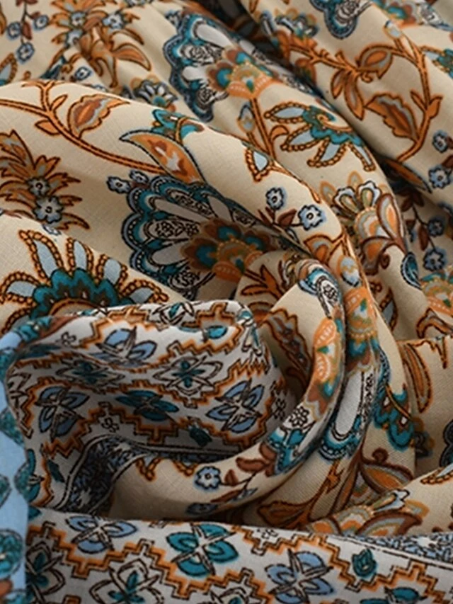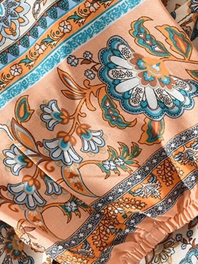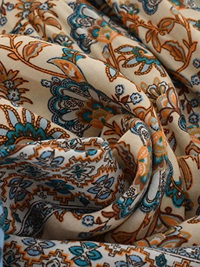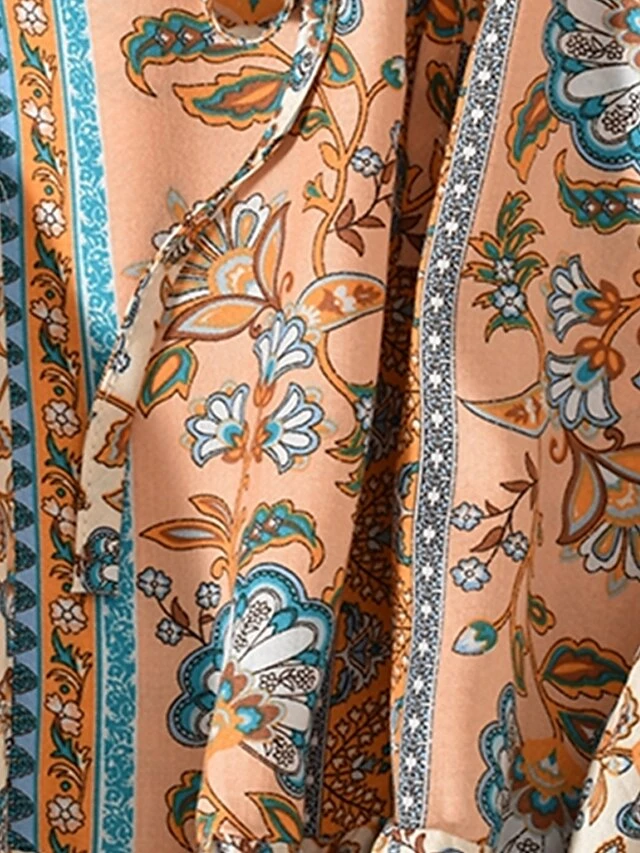 Women’s Casual Dress Winter Dress Ethnic Dress Floral Tribal Lace Up Ruched Crew Neck Puff Sleeve Midi Dress Fashion Ethnic Outdoor Christmas Long Sleeve Loose Fit Red Khaki Dark Blue Fall Winter
