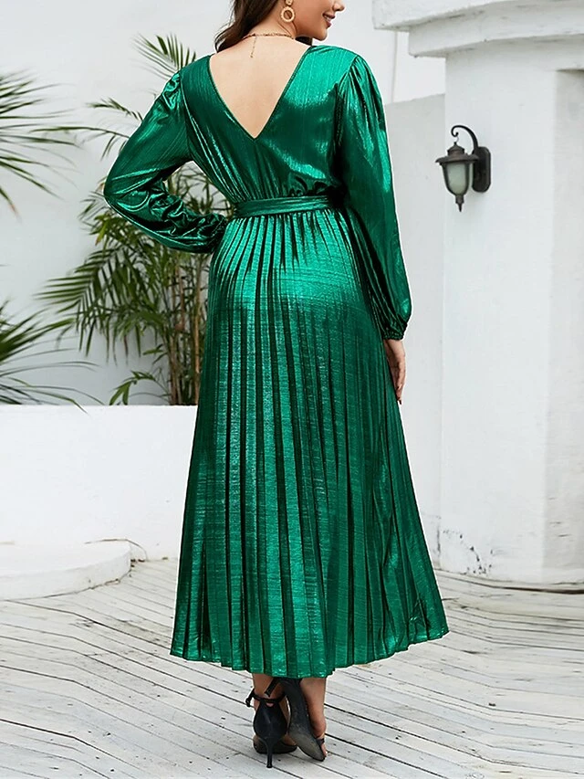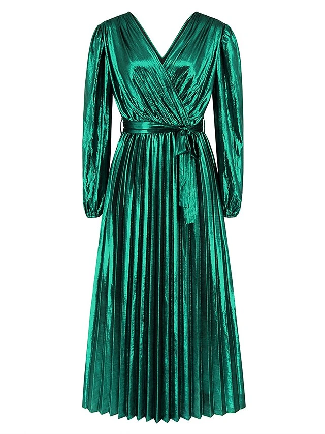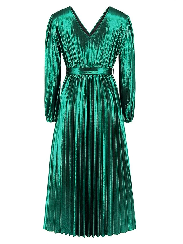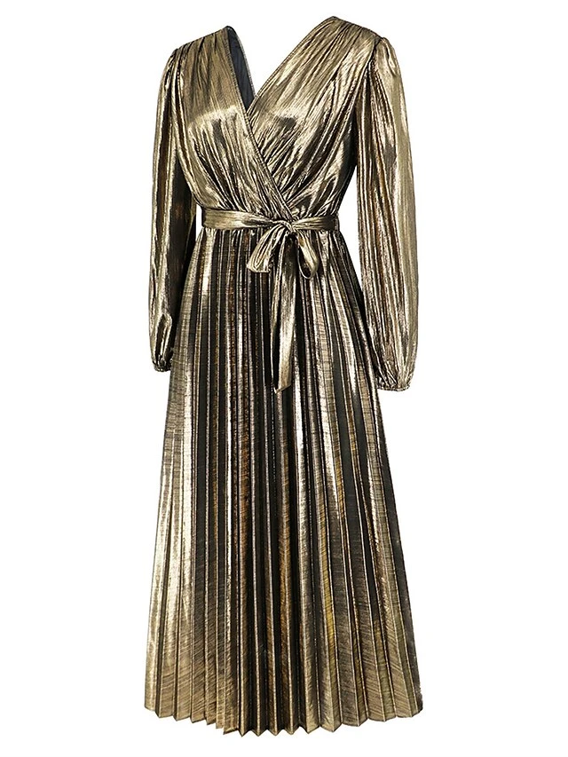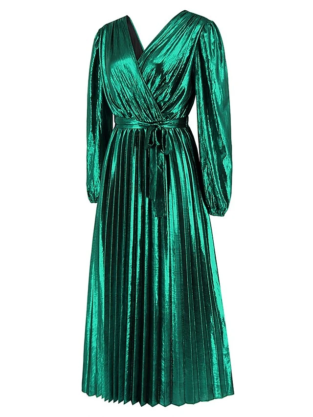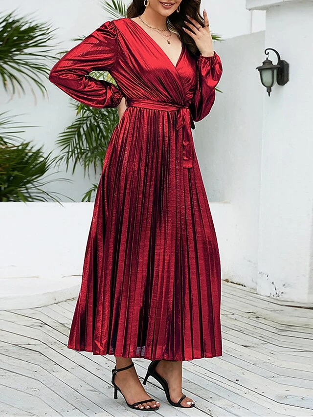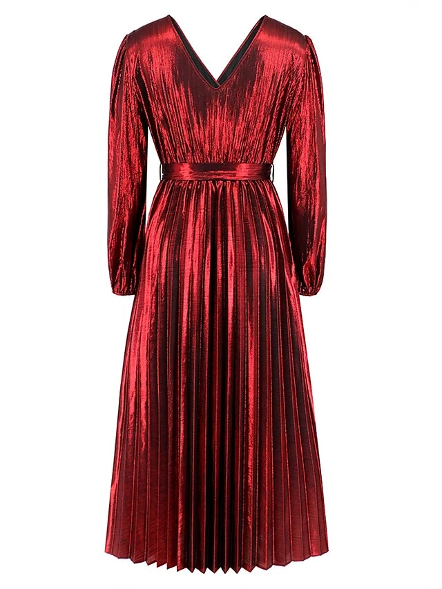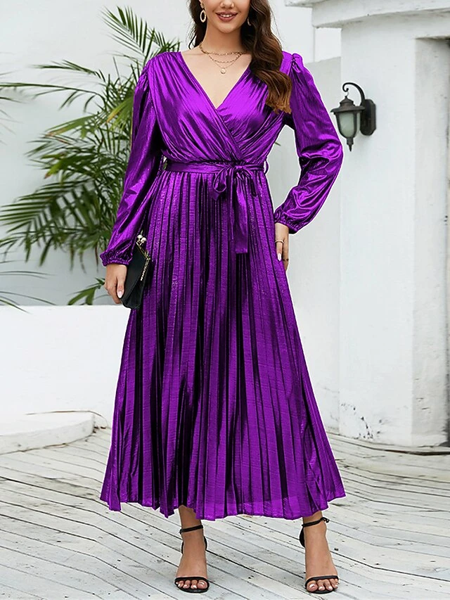 Women’s Casual Dress Winter Dress Plain Dress Midi Dress Lace Up Pleated Outdoor Street Daily Fashion Streetwear V Neck Long Sleeve 2023 Loose Fit Yellow Red Purple Color S M L XL XXL Size