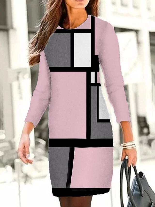Women’s Casual Dress Winter Dress Sweatshirt Dress Geometric Plaid Print Crew Neck Mini Dress Fashion Streetwear Outdoor Daily Long Sleeve Loose Fit Pink Blue Green Fall Winter S M L XL XXL