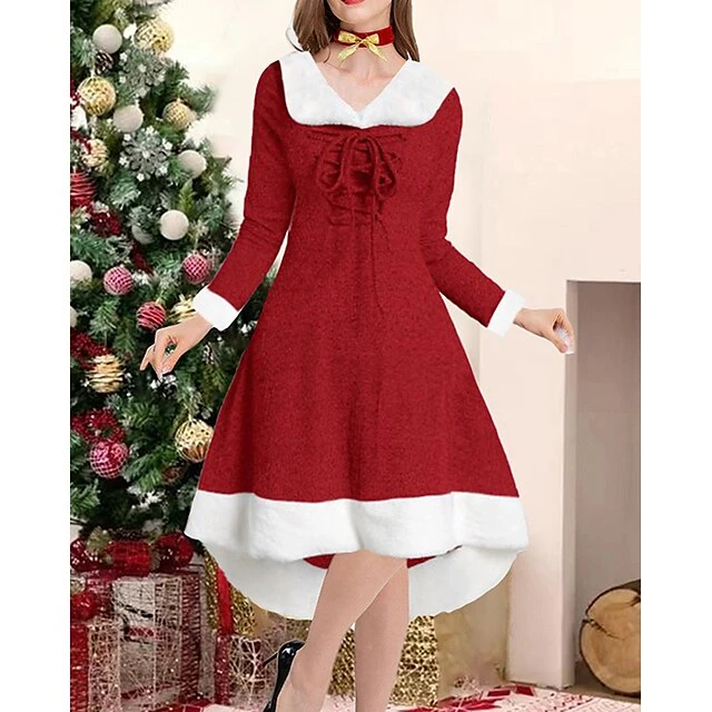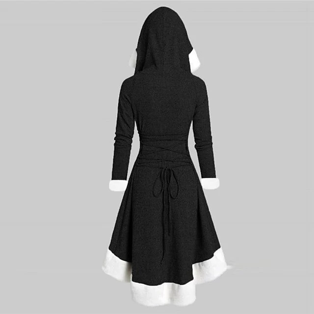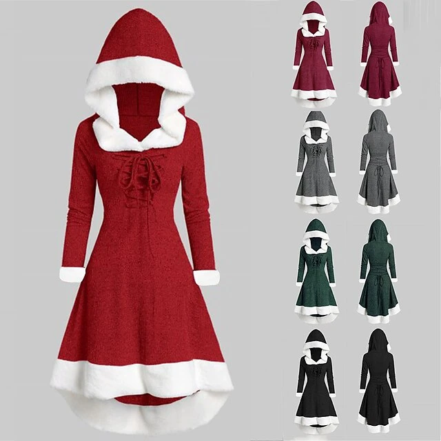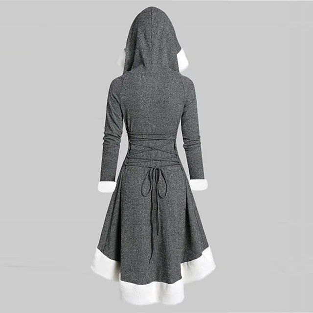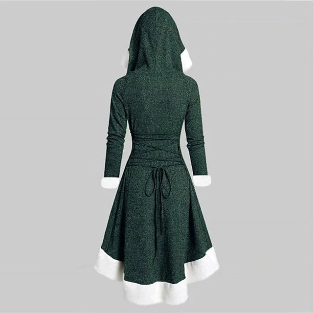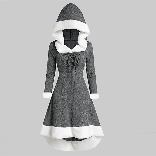 Women’s Christmas Hoodie Dress Vintage Dress Midi Dress Green Black Wine Red Gray Long Sleeve Pure Color Patchwork Winter Fall Hooded Vacation Vintage 2022 S M L XL XXL 3XL