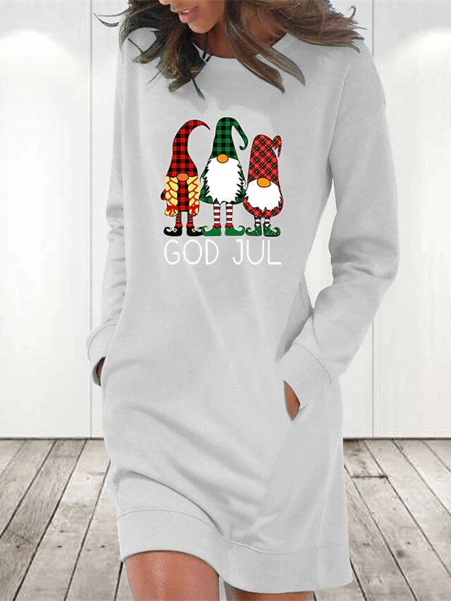 Women’s Christmas Sweatshirt Dress Winter Dress Short Mini Dress Light Blue Grey White Long Sleeve Letter Santa Claus Pocket Print Fall Winter Crew Neck Stylish Casual 2022 S M L XL 2XL