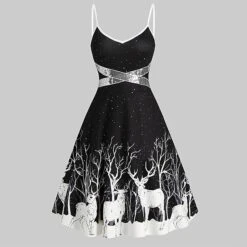 Women’s Christmas Swing Dress Slip Dress Midi Dress Green Blue Purple Red Black Sleeveless Snowflake Cold Shoulder Print Winter Fall Spaghetti Strap Fashion Party Sexy 2022 S M L XL 2XL 3XL