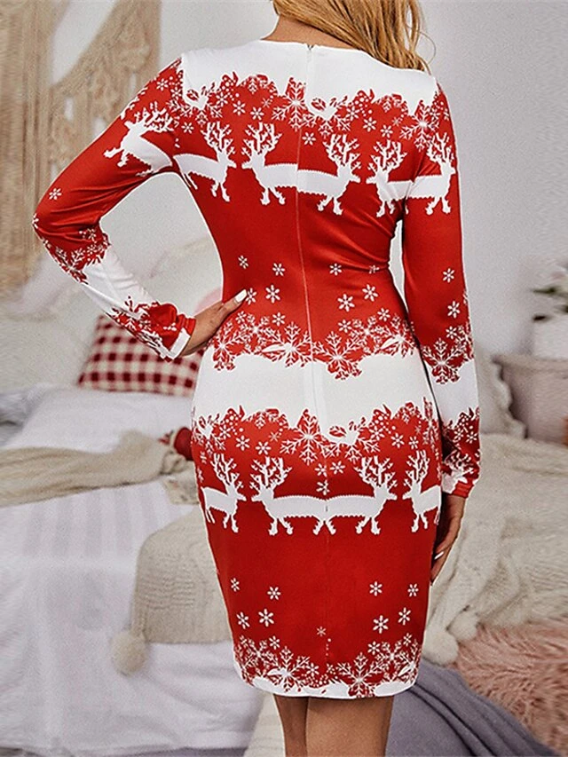 Women’s Christmas T Shirt Dress Tee Dress Sheath DressShort Mini Dress Red Long Sleeve Floral Plaid Snowflake Print Fall Winter Round Neck Fashion Modern 2022 S M L XL XXL