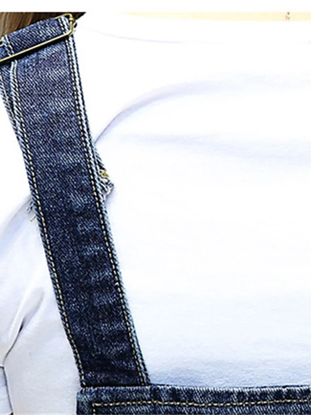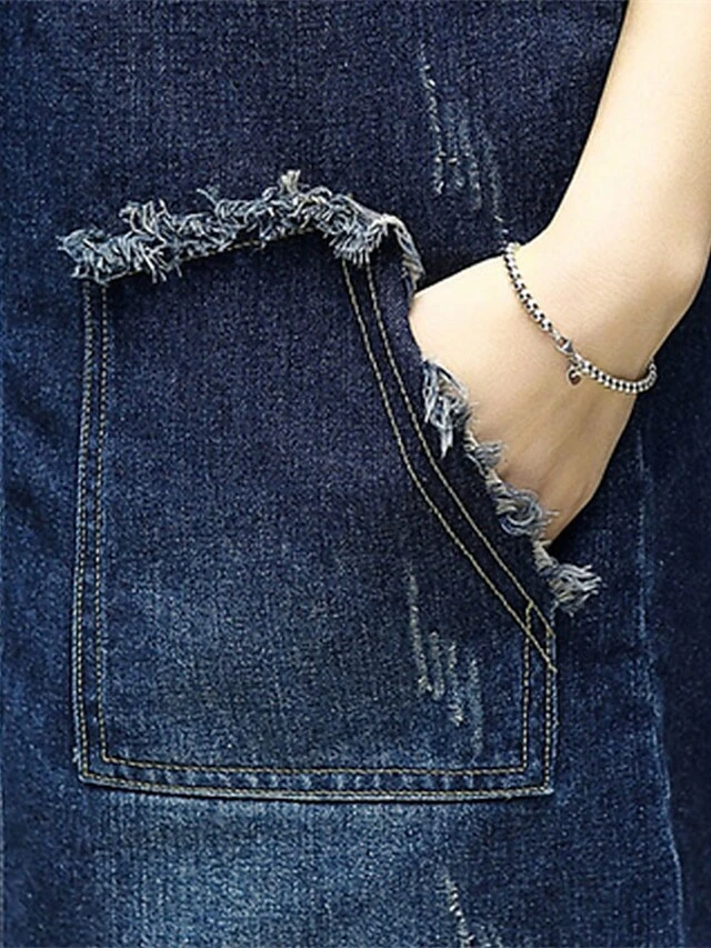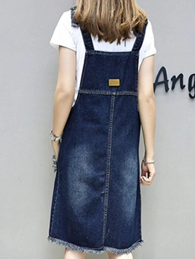 Women’s Denim Overall Pinafore Dress Midi Dress Cotton Denim Stylish Basic Outdoor Daily Vacation Square Neck Pocket Raw Edge Sleeveless Summer Spring 2023 Regular Fit Dark Blue Pure Color M L XL XXL